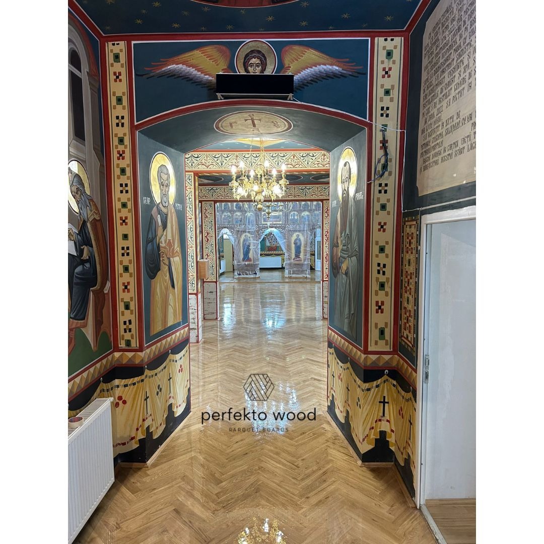 Solid Oak Herringbone Flooring in a Romanian Church