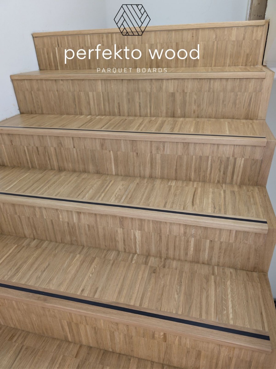 Oak Industrial Parquet 16x8x160 for Stairs in Oslo, Norway – Durable and Cost-Efficient Solution