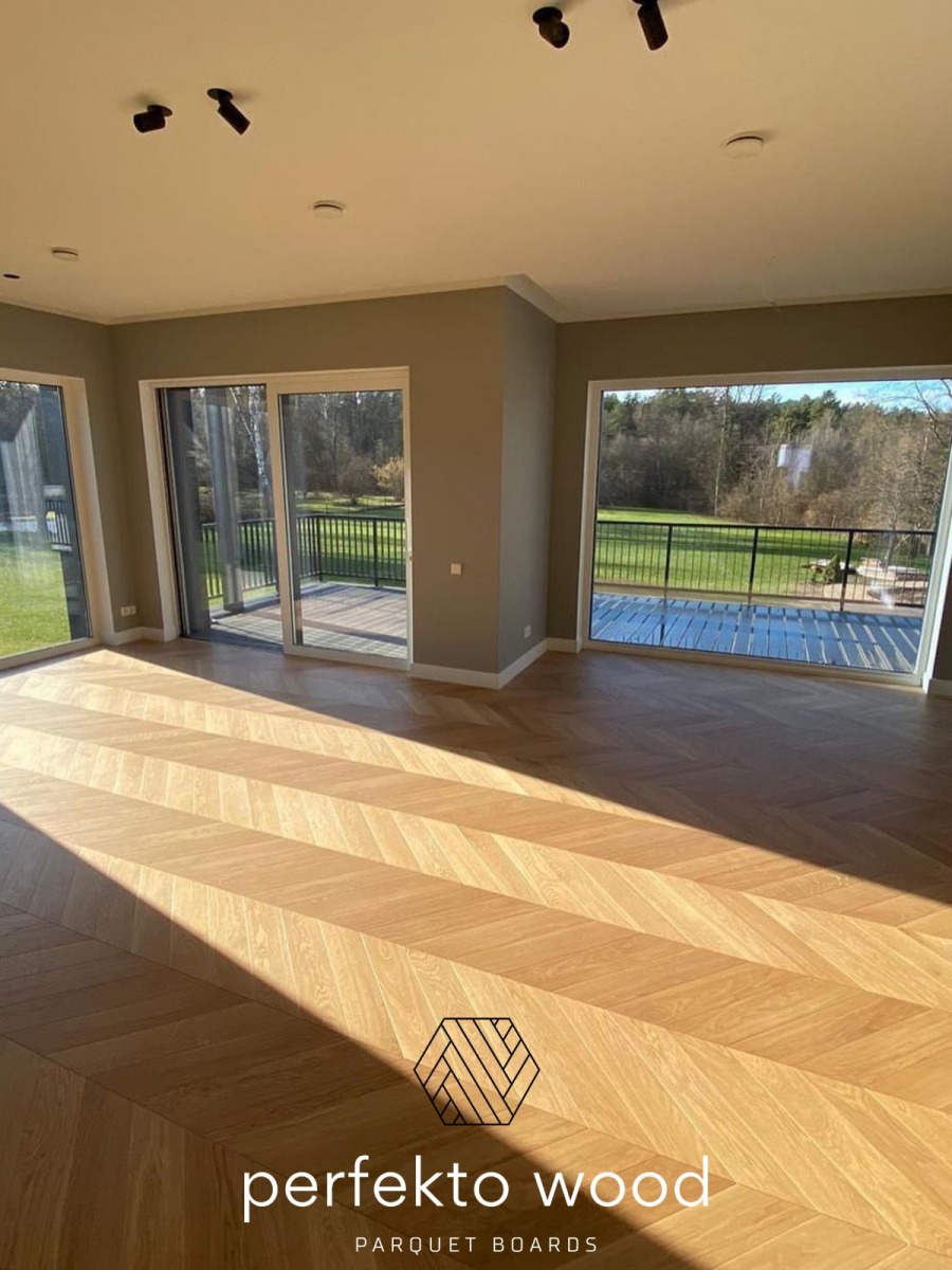 Solid Oak Chevron Parquet Flooring — Manufacturer from Lithuania