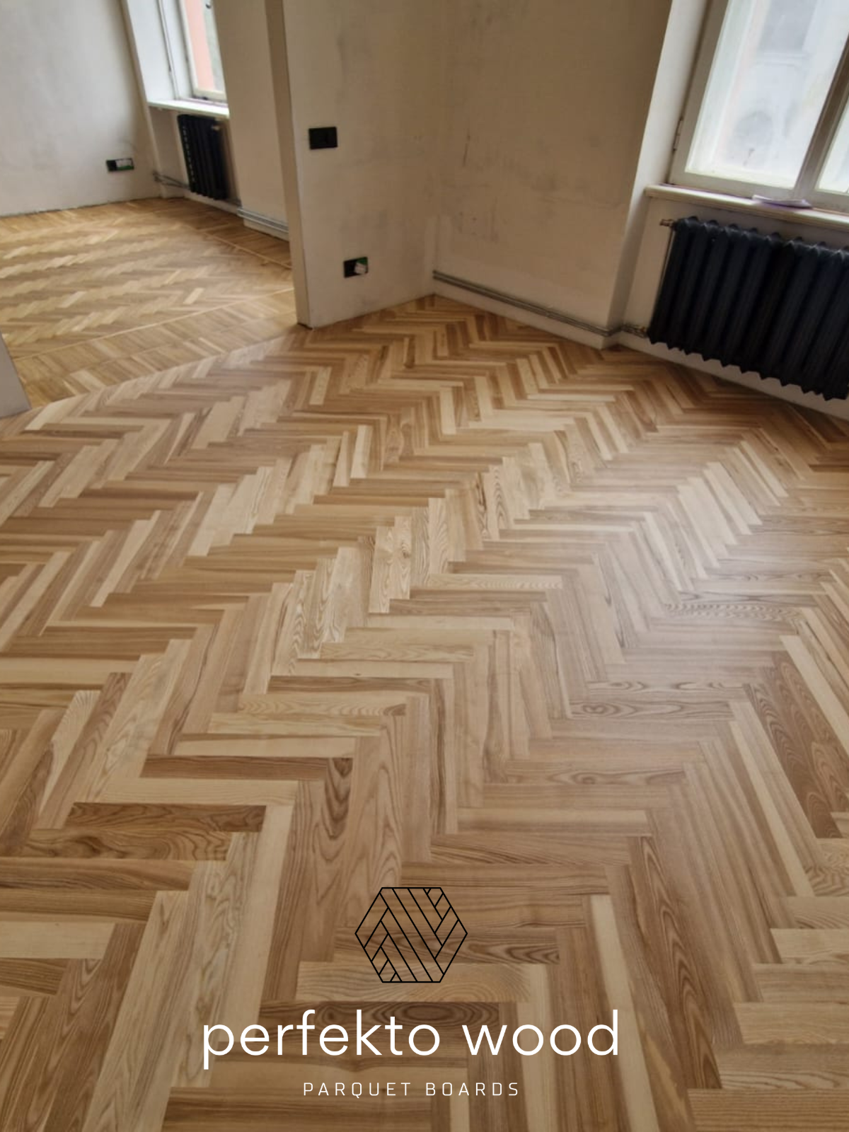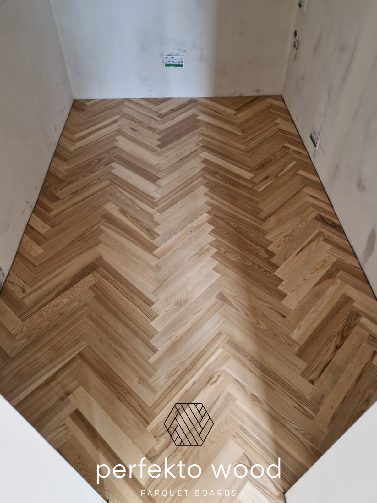 PerfektoWood supplied and customised solid ash parquet herringbone boards, ensuring precise dimensions, stable material, and high-quality finishing adapted to Baltic climate conditions.