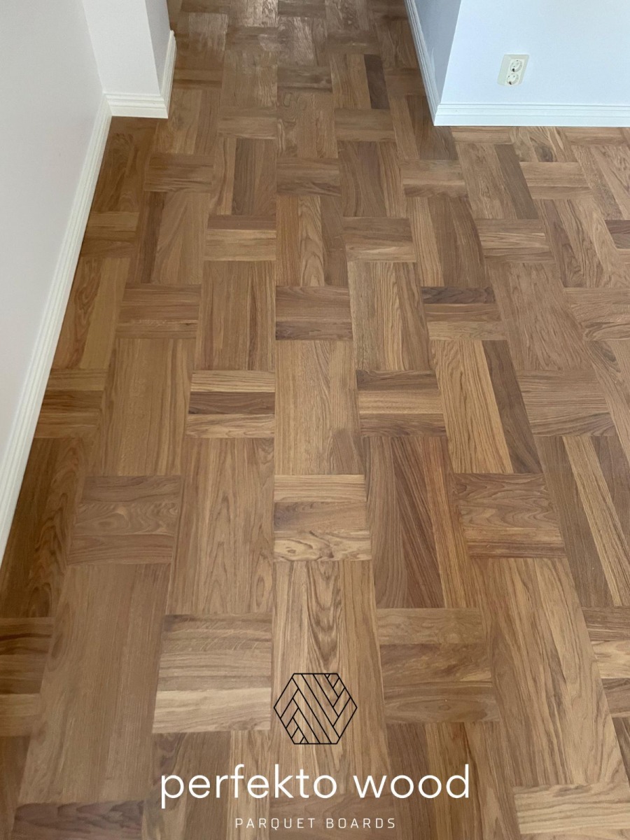 Solid oak parquet blocks are small flooring elements made from 100% natural oak wood. They are known for durability, strength, and a long lifespan. PerfektoWood manufactures solid oak parquet blocks in Lithuania for residential and commercial projects across Europe.
