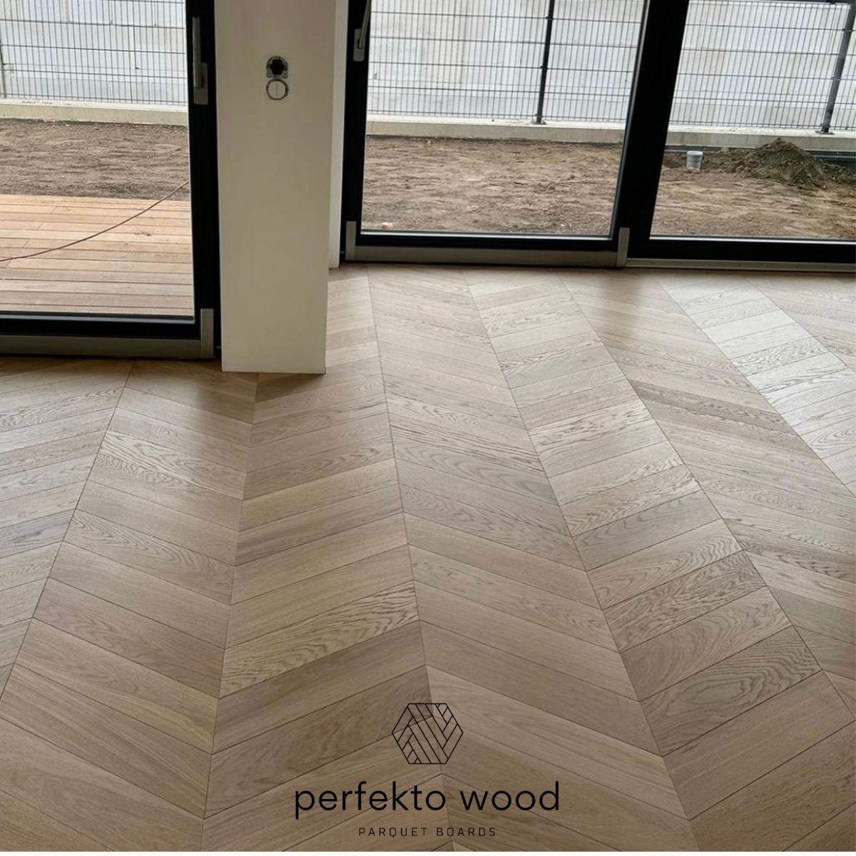 PerfektoWood supplied premium chevron oak parquet flooring for a residential project in Prague, Czech Republic. The project features a 60-degree chevron pattern made from select grade European oak with a brushed surface and finished in elegant Winter Forest colour, creating a modern yet timeless interior.