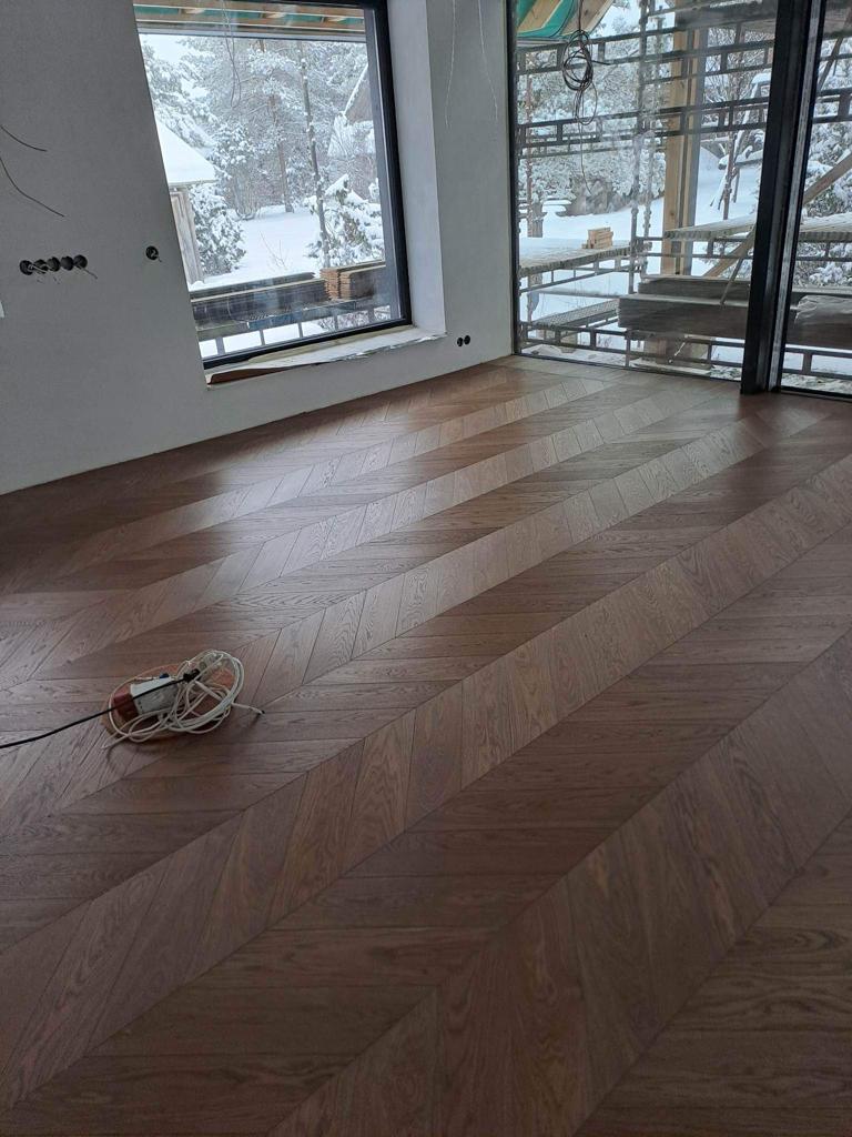 PerfektoWood supplied engineered oak flooring for a construction project in Tallinn, Estonia. The flooring features a stable birch plywood core designed for long-term dimensional stability in Nordic-Baltic climates, with a select grade unfinished oak surface for on-site finishing.